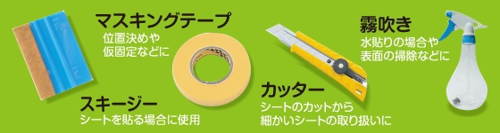 - 直貼り はカッティングシートを接着面に直接貼ります。水を使用できない場合はこちらになります。比較的短時間で作業が終わる事と比較的どんな条件でも貼る事ができます。しかし一度カッティングシートを貼ったら修正ができないため接着面などにゴミなどがあった場合は、気泡や粒として残ってしまいます。