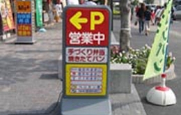 コンビニエンスストアなどのテナントなどでは道路に面した敷地内にスタンド看板を置き、通りからお店を認識されやすいようにしています。