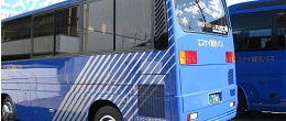 観光バスのボディの後部にはカッティングシートを使用してストライプのラインを入れました。