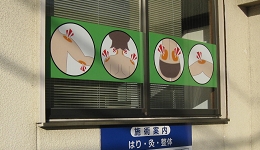 かっぱのイラストで有名な回転寿司店の入口横にあるガラス面にイラストを切り抜いたフォグラスシートを貼りました。ガラス面を遮る事なく店内も見えやすいようにフォグラスシートを使用してあります。