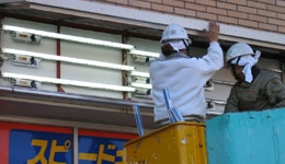蛍光灯が一本球切れするだけでも見栄えが悪くなってしまいます。高所作業車などを使用しての各種メンテナンスはお気軽にご相談ください。