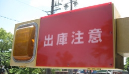 アクリル劣化のため表面のアクリル交換を行いました。立体駐車場で出庫の際の注意を通行者に促すものです。