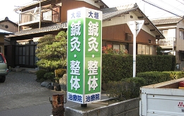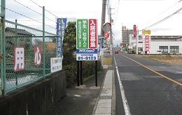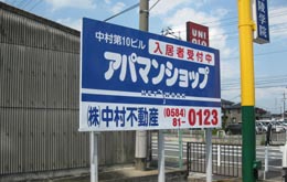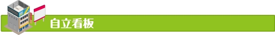 主要道路に接した店舗の敷地内の空きスペースに店舗の誘導を目的として通行人や走行中の車内から見えるように鉄骨などの脚をつけ看板を設置したものを自立看板といいます。
