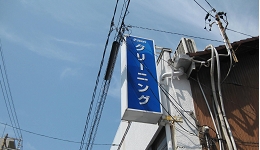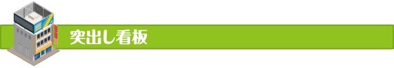 建物の壁面を利用してアングルなどを利用して垂直方向に取り付ける看板を突出し看板といいます。表示面が道路面に水平になるため通行人や走行中の車内から見やすい看板になります。