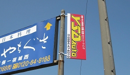 壁面看板だと見づらい場所でも突出し看板であれば道路からも認識されやすい看板になります。設置場所に適した看板のご提案を致します。